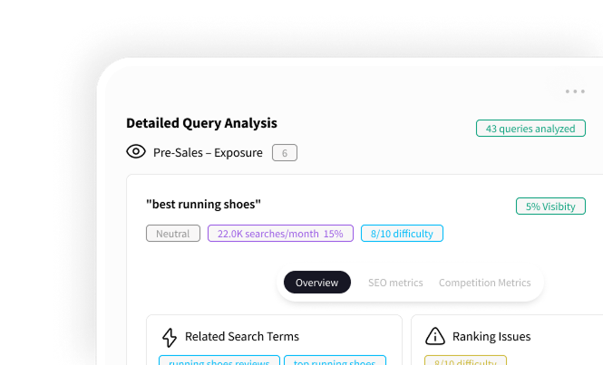 Understanding your AI search presence helps you compete effectively in the growing AI-driven customer journey. Without insight into AI visibility, you risk losing market share to better-optimized competitors.